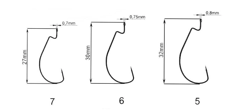 Crazy Fish’s Wide Range Offset Joint Hook is an excellent choice for weedless mounting of small shads for dropshot and ultra-light presentations. This hook is available in sizes 5, 6 and 7 and is designed with an extra wide bend and an extra large eye, allowing a lot of movement in combination with a Flex Head. Also ideal for use on Texas or splitshot rigs. The hooks are made of carbon steel and chemically sharpened with a black chrome finish and are packed per 15 or 20 pieces.