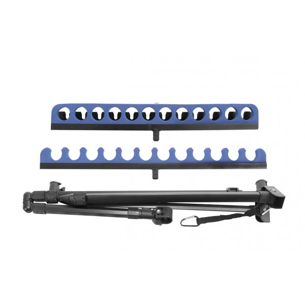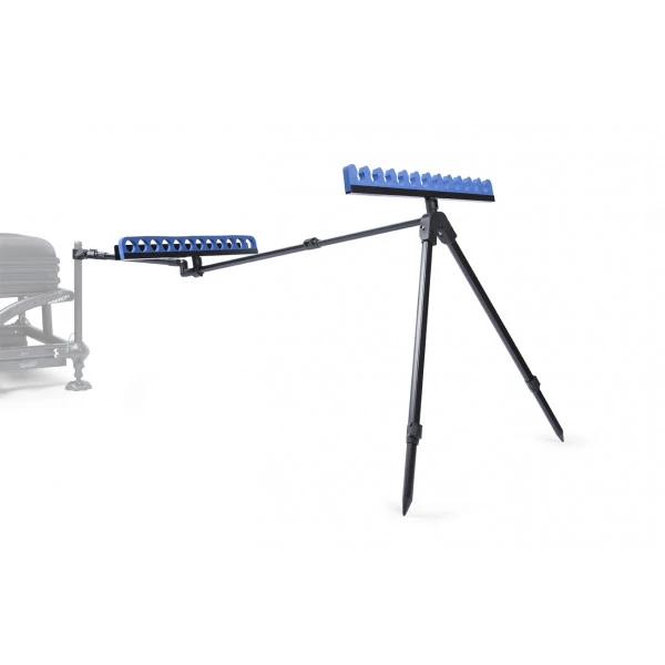 This is the ultimate top kit support that offers the angler an extremely versatile and stable solution for depositing topsets and rods. The adjustable and pivoting OffBox 36 Snaplok arm allows you to deposit your topsets in any position near your seat box or side plate, putting them right at your fingertips and eliminating obstacles on the bank. The soft EVA support head can accommodate up to 12 topsets, while the wide notches also allow you to travel for longer sections. The chance of your topsets being blown off the support by the wind is minimized by the enclosing EVA back support, which holds the kits securely in place. This back support also has a sturdy, Pulla Bung-friendly back plate with notches, allowing you to deploy any set you want. Both support heads have integrated Snaplok Quick Release Inserts for compact storage of the Deluxe Kitsafe. The length and height of the support are adjustable using the Quick Release Cams. Also included as standard is an adjustable stability strap to which a heavy weight can be mounted, such as a feed bucket. This gives extra security in extreme weather conditions. Standard delivered in a padded carrying bag and can be combined with leg profiles up to a diameter of 36mm. A top product from Preston for the serious (competitive) angler.