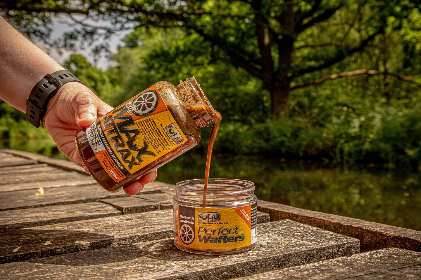 These PVA-friendly, food-based liquids are the latest innovation in forage stimulation around the hookbait. The highly soluble substances are packed with nutrients and attractors, drawing carp directly to them. Use these Max Attrax Liquids for example as a dip to give your hookbait an extra advantage or as a glug to make your boilies more attractive. Solar Max Attrax Liquid is instantly attractive but also effective for long-term use all year round.