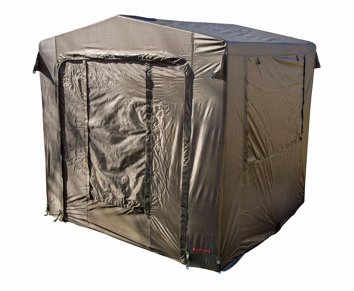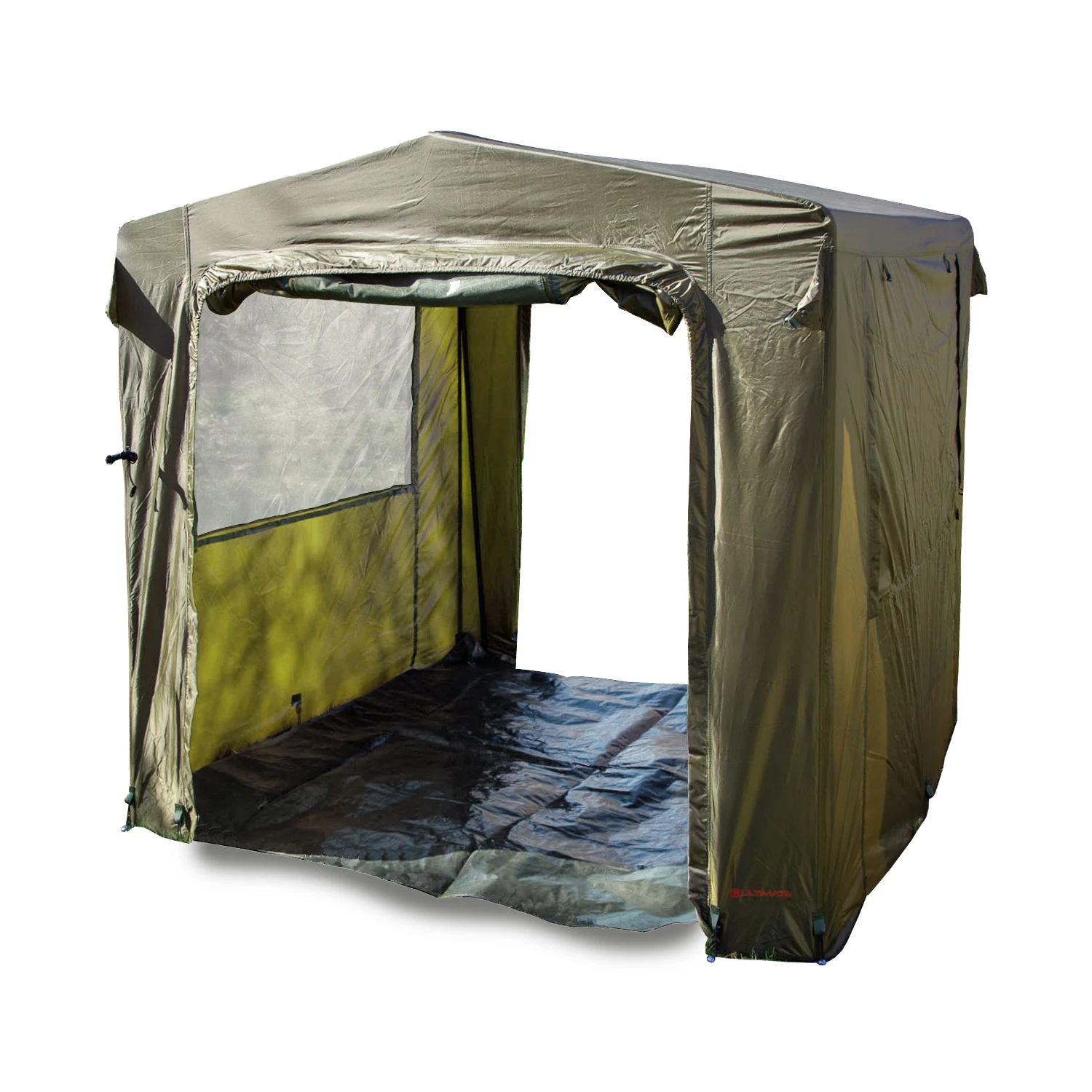 This Ultimate Cook & Chill House is perfect for longer sessions with several people and can be used as a kitchen, extra storage or for chilling out together. The spacious and tall tent has a metal frame of reinforced tubes with extreme rigidity and strength and is very quick to set up. Tensioning points in each corner allow you to attach the tent to the ground for extra stability and as an extra safety against wind gusts. Thanks to the 3000HH polyester, not a speck of water can penetrate and you will always stay dry. There is an entrance on both sides of the tent and the window has a mosquito net option. This Ultimate Cook & Chill House comes with heavy duty T-pegs and a sturdy and spacious groundsheet.